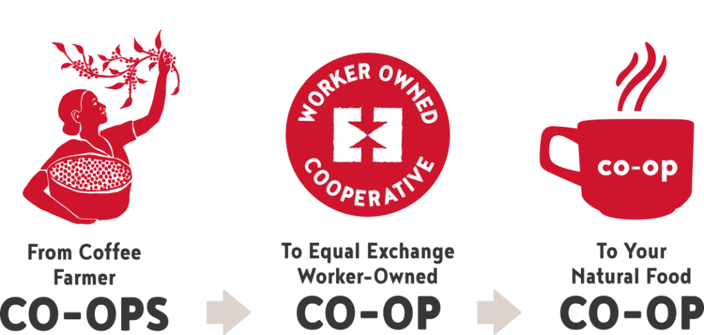 From cultivation to your cup, this coffee moves through a network of co-ops. Small-scale farmers grow and process the coffee through their own cooperatives. Equal Exchange – a worker-owned co-op – sources, imports, and roasts it, paying premiums that support organic farming, quality, and community-led projects. They then sell it to food co-ops like ours, building relationships rooted in transparency, shared values, and long-term commitment.