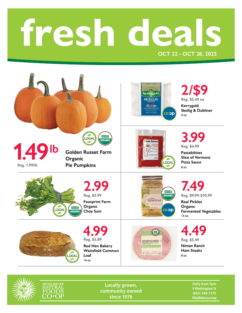 A coupon and the Member Deal appear every week on Page 2 of Thursday’s Addison Independent. Check our Fresh Flyer for fresh deals on produce, dairy, meat, and deli every week! Looking for even more savings? Check out our new Co-op Deals Flyer (now with only items we carry!)